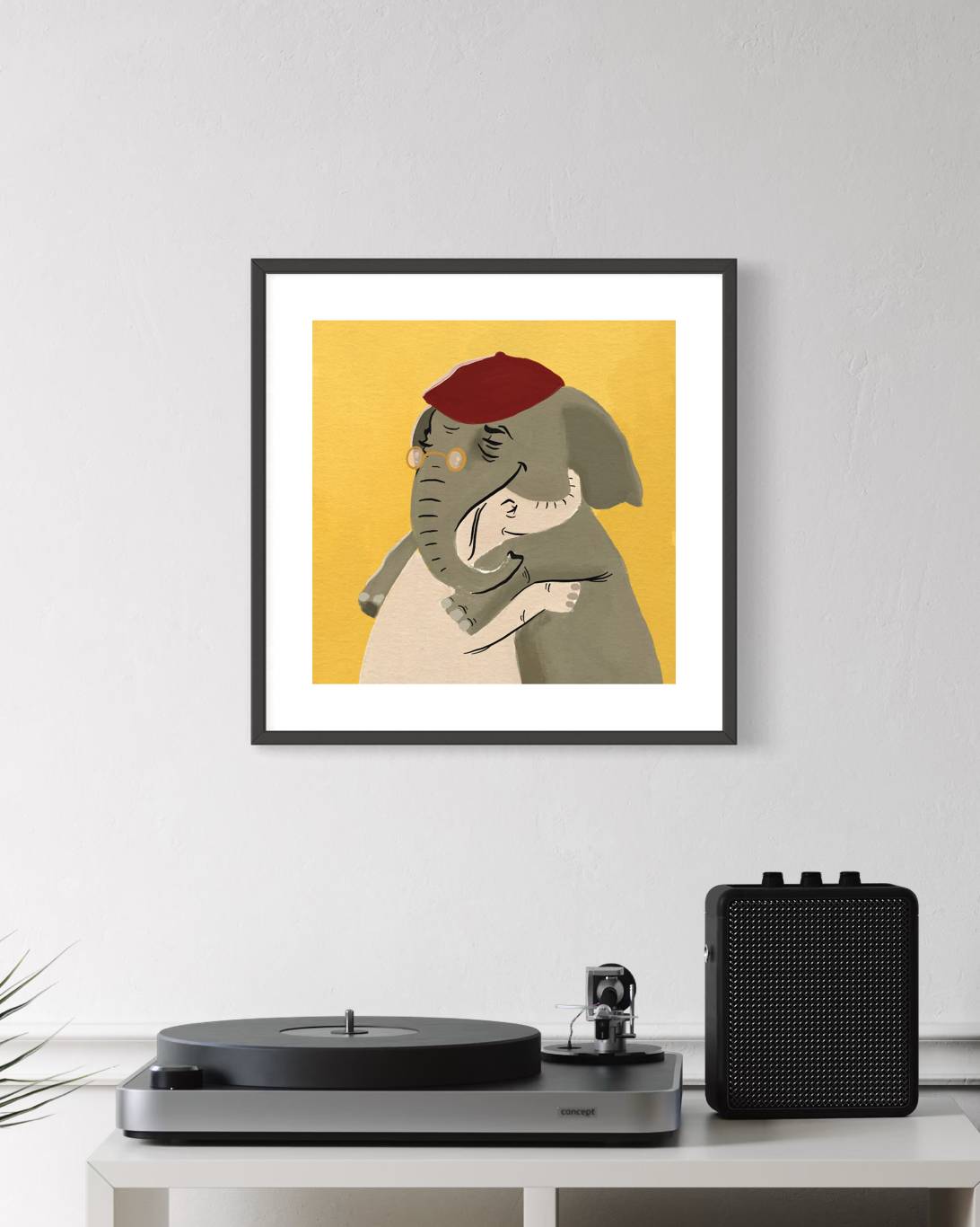 איור זוג פילים המושלם לכם ולמי שאתם אוהבים ורוצים להעניק קצת הומור לחדר עבודה שלכם